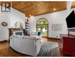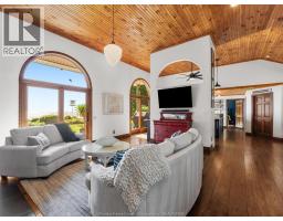 266 East Beach Rd—arguably one of the most unique and inviting lakefront homes in Leamington, emulating the vibe of Pelee Island. Tucked away on nearly 1 acre of pristine shoreline along the East Shore, this property feels like your own private retreat. Surrounded by nature with no neighbours to the north for over 0.4 kilometers - serenity, seclusion, and soul-soothing views define the experience here. Full of rustic charm, yet modern finishes, this 1.5-storey full brick home offers a thoughtful layout with soaring 13’ ceilings in the main living area, 3 (could be 4) bedrooms, and 2.5 bathrooms. Reclaimed brick from Detroit, stained glass accents, solid oak doors, wood burning fireplace w/ large oak mantle all add warmth & character throughout. Smart home upgrades—including high-end Andersen windows, a 360° 4K infrared security system, smart lighting, and fibre-optic internet—blend old-world beauty with modern convenience. A stunning addition includes an expansive attached garage/workshop with loft space, 10’ + 8’ garage doors, heated floors, its own electrical panel, and a loft. The original garage is currently set up as a home gym with flexible storage or parking use. Other highlights: granite countertops, new custom oak bar, main-floor laundry, and a full alarm system. A whole-home HVAC dehumidifier keeps the air fresh year-round, and the roof is a 3-layer 50-year asphalt shingle (2010 main house, 2018 addition). As a bonus, there is a bunkie that offers income potential or guest accommodations, complete with its own deck, BBQ, private outdoor shower, kitchenette, lofted queen bed, and breathtaking lake views. The shoreline is fortified with a high break wall and massive boulders. 10 min to Point Pelee National Park, 12 min to Leamington Marina & Seacliff Park. If you’ve been searching for a home that feels like a hidden paradise with equal parts peaceful getaway and functional forever home, this is the one. Contact me for more information! (id:47351)