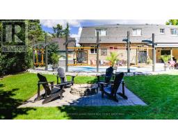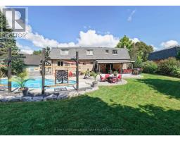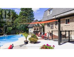 Set on a beautifully treed half-acre lot in an exclusive small community setting, this exceptional two-storey residence offers the perfect balance of privacy, luxury, and convenience. Surrounded by mature trees and lush landscaping, the backyard feels like a private resort - complete with an inground pool, expansive entertaining space, pool house and covered patio. Peaceful seclusion rarely found so close to the city. Inside, the home features four generous bedrooms and thoughtfully updated living spaces designed for both everyday comfort and elegant entertaining. The gourmet kitchen is beautifully appointed with quality cabinetry, premium finishes, and large windows overlooking the private grounds. Updated bathrooms offer spa-inspired finishes and timeless sophistication. The fully finished lower level adds incredible versatility and includes a convenient walk-up to the backyard. This would be ideal for extended family living, guests, or seamless indoor-outdoor entertaining. Expansive windows throughout flood the home with natural light, enhancing its airy, upscale feel. This is a rare opportunity to enjoy estate-style living on a half acre, with resort-like amenities, in a welcoming community just moments from shopping, major highways and premier golf destinations. (id:47351)