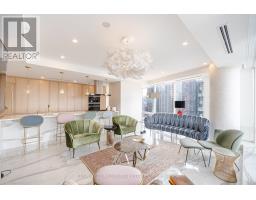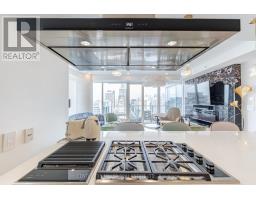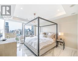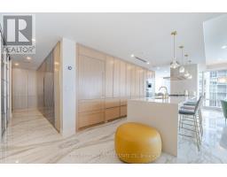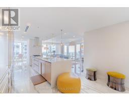 Fully Furnished Luxury Suite at The Residences of Shangri-La - 27th FloorExperience exceptional 5-star hotel living in this spectacular corner suite located above the renowned Shangri-La Hotel in the heart of Toronto. This fully renovated and fully furnished luxury residence offers 1,746 sq. ft. of elegant living space plus a balcony, showcasing breathtaking panoramic views of the city.This bright and spacious unit features 10-ft ceilings and Savoia porcelain flooring throughout, creating a refined and modern living space with magnificent finishes.The custom-designed kitchen features custom wood joinery cabinetry with elegant brass ironmongery, marble countertops, and a Dovedale marble kitchen counter, complemented by top-of-the-line appliances and premium sanitary ware.The suite is enhanced with automatic motorized blinds throughout, dimmable LED lighting, and modern spotlights, creating a warm and sophisticated atmosphere. The balcony features Banas Stone sandstone flooring with integrated floor lighting, perfect for enjoying the stunning city views.The upgraded washrooms include integrated electronic bidet toilets, offering additional comfort and luxury. The primary suite includes custom blinds, a luxurious 5-piece ensuite, and a spacious walk-in closet with large custom white-finish cabinetry.All furnishings are included, featuring bedroom furniture, den furnishings, living room and dining room sets, and all kitchen appliances.Residents enjoy world-class amenities, including: 24/7 Concierge & Valet Parking Fitness Centre & Spin Studio Yoga Room & Indoor Pool Award-Winning Miraj Hammam Spa by Caudalie Paris (Turkish Spa) Room Service & Visitor ParkingUnbeatable downtown location, steps to the Financial District, subway, and the underground PATH, and minutes to Toronto Harbourfront, Bloor-Yorkville shopping, CN Tower, Rogers Centre, and Scotiabank Arena. A rare opportunity to o a luxurious residence in one of Toronto's most prestigious buildings . (id:47351)