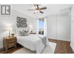 Find everything at your fingertips here! Charming and tastefully updated condo nestled on 4 acres of beautiful park-like grounds in the heart of Mississauga. This bright, beautifully renovated corner suite offers a spacious, well-designed layout filled with natural light.Elegant wainscoting, smooth ceilings, and new flooring throughout create a stylish yet comfortable living space. Enjoy walk-outs to a private balcony accessible from both the living room and primary bedroom. The spacious bedroom also features a 3-pc ensuite and a walk-in closet. The versatile den easily functions as a home office or additional guest room. Ample storage throughout, including a convenient in-unit locker. Maintenance fees are all-inclusive,covering utilities, TV, and internet, and the suite comes with one exclusive parking space.Located in a very well-managed, pet-free building with recently updated windows and balcony doors. Residents enjoy fantastic amenities including an outdoor saltwater pool and tennis court. Unbeatable location just minutes to Square One Shopping Centre, restaurants, thelibrary, and everyday conveniences, walking distance to the GO Train, and major highways including the 403, 401, and QEW. (id:47351)