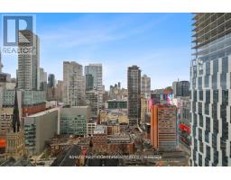 Welcome to 199 Church Street! This bright and modern 2-bedroom, 2-bathroom unit features a functional layout with sleek neutral finishes throughout. The kitchen offers stylish cabinetry, a herringbone backsplash, and integrated appliances. Floor-to-ceiling windows provide beautiful city views, including St. Michael's Cathedral. Conveniently located steps to TMU, University of Toronto, George Brown College, subway and TTC, as well as Eaton Centre and Yonge-Dundas Square. Enjoy 24/7 concierge service and premium building amenities, including a gym and outdoor lounge. (id:47351)