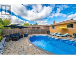 Welcome to this beautifully updated 3-level backsplit (feels like a bungalow!), perfectly set on a large, private lot with no houses behind and over 51' frontage. The thoughtfully landscaped backyard is an entertainer's dream, featuring a composite deck and a gorgeous heated inground pool, the perfect spot for family fun and summer gatherings. Inside, the home has been renovated top to bottom with modern finishes and timeless details. The open-concept main floor boasts smooth ceilings, pot lights, crown moldings, and California shutters. The chef's kitchen offers a large granite island, white cabinetry with pot and pan drawers, stainless steel appliances including a gas stove and lots of storage. Upstairs, the spacious primary bedroom features a walk-in closet and direct access to the deck and pool area. The luxurious 5-piece semi-ensuite includes heated floors, double sinks, and a stunning 4'x4' glass shower. The lower level is inviting with laminate floors, crown molding, a cozy gas fireplace, an updated bathroom, and a modern laundry room. Opportunity to create an in-law suite with separate side entrance already in place. Electrical, plumbing, and venting close for kitchenette install. Practical upgrades throughout provide peace of mind: newer insulation, exterior doors, light fixtures, furnace, water softener, and owned tankless hot water heater. Other newer items include a smart dishwasher, microwave, exhaust hood motor, soffits/facia/eavestroughs, roof vents, and Nest thermostat. The pool is equipped with a newer pump, liner, heat exchanger, padded stairs, and a safety cover, and is professionally monitored bi-weekly. Additional highlights include a 2-car garage plus 4-car driveway with French curbs, smart garage door opener, security cameras with DVR, Ring doorbell, coded backyard gates, and a natural gas BBQ hookup. This home is truly move-in ready, combining style, comfort, and a backyard oasis you'll love. Don't miss it! (id:47351)