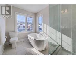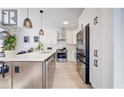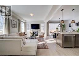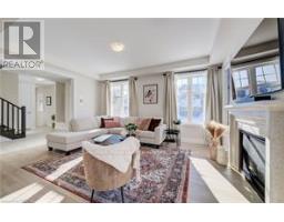 Welcome to 277 Forestwalk Street, a stunning 2,000+ sq. ft. corner-lot, two-storey home in a sought-after Kitchener neighbourhood. Offering 4 bedrooms and 3 bathrooms, this beautifully upgraded home combines modern design with everyday functionality. The main floor features a bright open-concept layout with 9-foot ceilings and an abundance of natural light. Hardwood flooring flows through the kitchen, living, and dining areas, creating a warm and cohesive space. The living room is anchored by a striking Mediterranean stone mantel gas fireplace, perfect for relaxing or entertaining. The chef-inspired kitchen showcases bright white cabinetry, granite countertops, a tiled backsplash, stainless steel appliances including a gas stove, and a large island with breakfast bar, plus a walkout to the backyard patio. Upstairs, you'll find four spacious bedrooms, including a luxurious primary retreat with a 5-piece ensuite featuring quartz countertops, elevated vanity height, a freestanding tub, glass shower, double vanity, and a walk-in closet. One additional bedroom also offers a walk-in closet. The upper level is completed by a convenient laundry room and a shared 4-piece bathroom. The unfinished basement provides endless potential and includes a 3-piece bathroom rough-in, ready for your personal vision. Outside, enjoy a large fully fenced yard with beautiful double-door entry gates, ideal for families and entertaining. This home includes approximately $50,000 in upgrades, a double-car attached garage, and a two-car driveway, offering parking for up to four vehicles. Ideally located just a 2-minute walk to the new elementary school, library, and community centre, and close to St. Mary's Hospital, Sunrise Shopping Centre, Fairview Park Mall, parks, public transit, and Hwy 8 access-this exceptional home truly has it all. (id:47351)