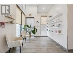 Exceptional opportunity to own a street-level commercial condominium in one of Oakville's most prestigious waterfront communities. This boutique corner unit offers outstanding exposure just steps from Bronte Harbour.Positioned within The Shores luxury condominium building, the unit features a professional ground-level entrance, expansive wall of windows, and a bright, modern layout ideal for a variety of commercial uses.Property Highlights: 824 sq. ft. street-level commercial condo. Prime corner exposure with excellent natural light. Functional layout currently configured with multiple treatment/office rooms. Private washroom Storage/utility areas. Ground-level loading access. High pedestrian traffic in affluent waterfront community. Zoning permits a wide range of uses including retail, wellness, professional office, and service-based businesses.Added Value Opportunity:Existing spa-related equipment and furnishings may be available for purchase through separate asset sale negotiations, creating a potential turnkey opportunity for qualified buyers looking to operate immediately.An EXCLUSIVE USE for personal services in the building. Whether you are an owner-operator, investor, or expanding brand, this is a rare opportunity to secure commercial space in the highly sought-after Bronte Village waterfront corridor. (id:47351)
