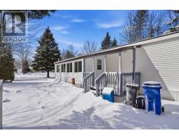 Welcome home! This immaculate mobile home is set on a beautiful lot surrounded by mature trees. Step inside to a practical kitchen with a dining area, while the inviting living room features a propane stove and a large window that fills the space with natural light. This home offers 2 bedrooms and a full 4 piece bathroom with a convenient laundry area, plus a bright solarium perfect for enjoying your morning coffee. Outside, enjoy a spacious backyard complete with 2 garden sheds. Updates include roof shingles right side 2021, left side 2025 and windows 2019-2020. Located in RV Resort Ottawa East Park, this property is part of a 55+ community adjacent to a campground, offering access to a wide range of amenities including a restaurant, salt water in ground pool, pond and beach area, pétanque, shuffleboard, pickleball court, beach volleyball and a park, along with planned activities every weekend throughout the summer. The land lease is $550 per month, and the property features its own septic system, which is the responsibility of the mobile home owner. A wonderful opportunity for buyers seeking space, comfort and exceptional value! (id:47351)