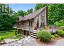 Welcome to 28 Big Tree Circle, a stunning, architecturally designed home offering over 2,500 square feet of finished living space, including a total of 4 bedrooms and 3 bathrooms. Tucked away on a private 1-acre lot in a peaceful forest setting, this exceptional property is ideally located just minutes from the Mansfield Ski Club, Mansfield Outdoor Centre, and a short walk to the Boyne River perfect for all-season recreation. Enjoy easy access to scenic hiking and biking trails, the charming village of Creemore, and the vibrant town of Collingwood. Inside, this beautifully crafted home features gleaming maple flooring, a granite and maple kitchen, and an impressive open-concept living, dining, and kitchen area highlighted by a dramatic wall of east-facing windows that flood the space with natural light and frame the surrounding forest. The thoughtfully designed layout includes a private second-floor primary bedroom retreat complete with a 4-piece ensuite, a cozy sitting area overlooking the main living space, and a private deck nestled among the treetops. The main floor offers flexibility with a bedroom or office and an adjacent 3-piece bathroom ideal for guests or remote work. The bright, fully finished, above-grade walk-out lower level features two additional spacious bedrooms, a 3-piece bath, a large games room with a pool table, a cozy TV area, and an inviting porch sitting area perfect for enjoying your morning coffee or unwinding in nature. A detached double car garage provides ample space for vehicles, toys, and storage, while the loft above offers a perfect bonus area for your hobbies, studio, home office, or additional storage. Whether you're looking for a weekend getaway or a full-time residence, this exceptional home offers a rare combination of natural beauty, modern comfort, and an unbeatable location just one hour from Toronto Pearson International Airport and the GTA. (id:47351)
