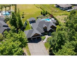 Discover unparalleled luxury living in this stunning ranch bungalow showcasing impeccable craftsmanship with stone and hardboard exterior. Nestled on 1.75 acres in a sought-after executive neighbourhood, this property offers the perfect blend of privacy and convenience for commuters with easy access to Hwy 115 and 407. The meticulously landscaped grounds feature impressive Armour stone accents, Trex decking, and an elegant pergola. Entertain in style around your inground salt water pool, surrounded by thoughtfully designed privacy landscaping. Unwind in your private hot tub accessible directly from the primary suite. Step inside to experience the sophisticated open concept living area and gourmet kitchen. The culinary enthusiast will appreciate the large centre island with premium stone countertops, professional gas stove, and convenient walk-in pantry. French doors provide seamless access to the expansive deck for indoor-outdoor entertaining. The formal dining room boasts coffered ceilings and oversized windows that flood the space with natural light. Beautiful engineered hardwood flooring flows throughout the main level elevating the home's elegant aesthetic. The lower level entertainment zone dazzles with a spacious recreation room, game area, wet bar, and California shutters throughout. Complete with a 3-car attached garage and countless upgrades throughout, this exceptional residence represents luxury living at its finest. (id:47351)