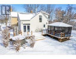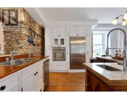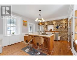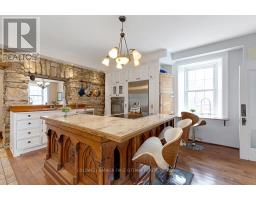 Set on 1.88 acres at the edge of historic Perth, this beautifully preserved 1875 stone home blends enduring character with thoughtful modern updates and space to grow. Lovingly maintained, it captures the soul of a true century home while offering today's comforts - most notably a showstopping chef's kitchen anchored by a one-of-a-kind island crafted from a reclaimed church altar. The interior offers three bedrooms and 2.5 bathrooms, including a stunning primary suite with a spa-inspired ensuite and a bright, tranquil bedroom that feels like a private retreat. Original hardwood floors, soaring ceilings, and intricate details reflect the craftsmanship of another era. A formal living room with a wood-burning fireplace insert and a separate dining room create inviting spaces for entertaining, while the cozy family room, warmed by another wood fireplace, is perfect for relaxed evenings at home. The dining room also features a natural gas fireplace and a convenient pass-through to the kitchen, ideal for gatherings large and small. Outdoors, enjoy a spacious screened-in solarium, a hot tub on the back deck, and a large barn brimming with potential, whether for a workshop, studio, or even a small flock of chickens. The home is serviced by its own well, providing excellent-quality water. Set well back from the road, the property offers rare privacy and a peaceful, country feel just minutes from downtown Perth's shops, restaurants, and charm. A truly special home with a rich history and plenty of room to imagine what comes next. (id:47351)
