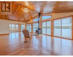 Welcome to 280 Sunnyside Drive, a stunning lakeside retreat nestled on the shores of beautiful Lake Nosbonsing in Bonfield. This exceptional 6 Bed & 5 Bath property ( with the option of 3 separate living spaces/kitchens) offers the perfect blend of year-round comfort and seasonal charm, featuring a spacious walk-out bungalow and a beautifully finished, winterized one-bedroom guest cottage. Designed to embrace natural light, the main home showcases Viceroy-style windows, vaulted ceilings, warm wood accents, and a cozy wood-burning stove. The open-concept living and dining area flows seamlessly onto a covered upper deck with a screened-in section ideal for enjoying serene lake views, day or night. Perfect for entertaining, the kitchen offers ample space to host gatherings, while the main floor includes 3 bedrooms and 3 bathrooms. The primary suite features a walk-in closet and four-piece ensuite. The second bedroom enjoys its own private three-piece bath, while the third offers a private balcony. A stylish two-piece main bath includes the laundry area for added convenience. The finished walk-out basement provides flexible living with a rec room, kitchenette, two bedrooms, and a 4 piece bath perfect for guests, extended family, or potential in-law suite. Step outside and enjoy two docks, a sandy beach, a fire pit, and expansive waterfront ideal for year-round recreation from summer swims to cross-country skiing. The attached, winterized guest cottage adds even more value, offering a charming one-bedroom layout with a clawfoot tub, beautiful wood finishes, plenty of natural light, and a private screened-in porch. Additional features include a detached double garage, in-floor oil hot water heating. Shore allowance is owned. Move in and experience the very best of lakefront living every season of the year. (id:47351)
