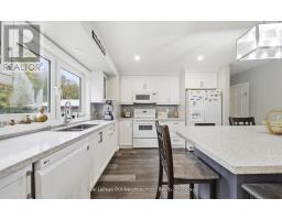 This beautifully renovated bungalow offers modern open-concept living in a sought-after area. The main floor features a bright, contemporary kitchen with a large island that seamlessly connects to the spacious living room - perfect for entertaining or family gatherings. Each of the three bedrooms is generously sized, and the updated bathroom adds a touch of modern comfort. The third bedroom currently includes convenient main-floor laundry facilities and a walkout to the rear deck overlooking the private backyard. This space can easily be converted back to a full bedroom if desired. The fully finished basement serves as a self-contained in-law suite, complete with its own entrance, a panoramic above-grade window, and a walkout to a lovely stone patio. The lower-level kitchen is modern and spacious, accommodating a dining table or moveable island. The bright living area offers peaceful views of the garden, and two large bedrooms plus a spa-like 4 piece bathroom and separate laundry facilities complete this versatile level. This home combines modern updates, flexible living spaces, and a prime location - ideal for multi-generational living or income potential. (id:47351)