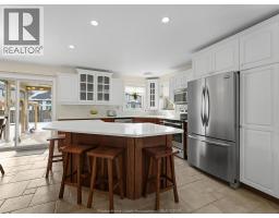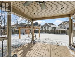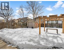 Exceptional Lakeshore Living! This unique & stunning 4-bedroom, 3.1-bath brick & stone 1 3/4- storey home offers space, style & versatility for the whole family. Step into a bright, open-concept main floor with hardwood floors, a chef-ready eat-in kitchen featuring a large island, quartz countertops (2023), coffee bar area & abundant cabinetry-perfect for cooking & entertaining. The main-floor primary suite boasts an ensuite and his-and-hers closets, complemented by convenient main-floor laundry and an additional 2-piece bath. Upstairs, three spacious bedrooms and a full bath provide room for family or guests, while the fully finished lower level features a large living area, an office (or potential fifth bedroom), 3-piece bathroom (2019), and utility room-ideal for work, play, or extra living space. Entertain or unwind outdoors in your private, fully fenced backyard, complete with a covered deck, gas barbecue hookup, pergola, and 2 sheds, beautifully landscaped for year-round enjoyment. Additional highlights include a double-car garage with rear garage door for convenient access, included appliances, flexible possession and a prime location near schools, shopping, and amenities. This home effortlessly combines convenience with Lakeshore charm. (id:47351)