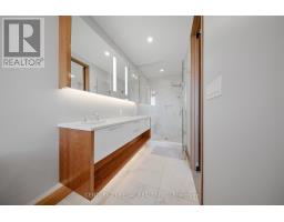 Presenting 28A Twenty First Street, a striking modern home in the sought-after Long Branch community, just moments from the lake, parks, top-rated schools,transit. This 4-bedroom, 5-bathroom residence offers over 2,400 sq ft above grade, plus a fully finished lower level with nearly 12-foot ceilings and a walk-up, bringing total living space to over 3,600 sq ft across three thoughtfully designed levels.The main floor features a bright, open-concept layout with impressive ceiling heights, hardwood flooring, pot lighting, custom millwork, and floor-to-ceiling windows that fill the home with natural light. The contemporary kitchen combines style and function with sleek cabinetry, premium appliances, and a Cambria quartz island, flowing seamlessly into generous living and dining areas ideal for both entertaining and everyday living.Upstairs, spacious bedrooms offer flexibility for families, guests, or a home office. The primary suite is a private retreat with a spa-inspired ensuite, two walk-in closets, and peaceful backyard views. A second-floor laundry room and three full bathrooms add everyday convenience.The lower level is equally impressive, featuring nearly 12-foot ceilings, a powder room, versatile living space, and direct walk-up access to a professionally landscaped backyard complete with mature greenery, irrigation, and accent lighting for a private outdoor setting.Notable upgrades include solar panels with battery storage (approx. $50,000 value), custom wrought iron front door inserts, custom roller shades and Restoration Hardware drapery (approx. $25,000), Panasonic trim and designer hardware, upgraded Roxul insulation, EV charger rough-in, and central vacuum rough-in-highlighting the home's focus on efficiency and quality construction.Ideally located near the waterfront, GO Transit, Humber College, local shops, and cafes, with easy access to the city & major highways, this home offers a refined blend of modern design, efficiency, and prime west-end living. (id:47351)