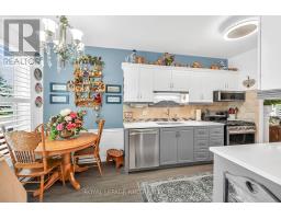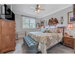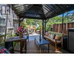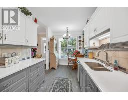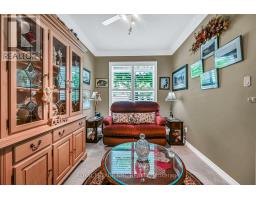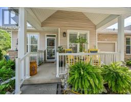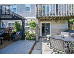 This pristine end-unit bungalow townhome with a fully finished walk-out lower level is located in the desirable Meadowlands community of Ancaster. The property offers about 2,000 sqft of meticulously finished living space across both levels. Recent upgrades total over $50,000. The main floor features 9-ft ceilings, refined crown molding, and an inviting open concept design. There are 3 bedrooms, 2 full bathrooms, and main floor laundry near the bedrooms. The modern kitchen is equipped with upgraded cabinetry, a double sink with garburator, luxury vinyl plank flooring, quartz countertops, premium stainless-steel appliances, and a comfortable breakfast nook. The spacious dining area seats six and transitions seamlessly into the living room with patio doors accessing a balcony. The primary bedroom features ensuite privileges and a walk-in closet. The professionally finished basement includes a generous family room with patio door access to a fenced rear yard featuring vibrant gardens, patio, deck and gazebo, plus there is a gas barbecue hook-up. An additional bonus room provides versatile space for a craft room, workout area, or has potential for a future 2nd kitchen. A 3rd bedroom, home office area, coffee bar, and 3-piece bathroom complete the lower level and offer excellent accommodations for guests. Additional amenities include a private driveway, an attached garage with interior access, and ample visitor parking. Extras include enhanced wood trim, hardwood flooring in the living and dining rooms and hallways, updated carpeting in bedrooms, premium California shutters, a new high-efficiency furnace and water heater, central air, and newly installed shower and bathroom fixtures. The Condo Fee covers road maintenance, lawn care, and snow removal. Situated close to highway access, a golf course, restaurants, and amenities such as Costco and the movie theatre. This home blends comfort, style, and convenience. Ideal for people seeking a low maintenance lifestyle. (id:47351)