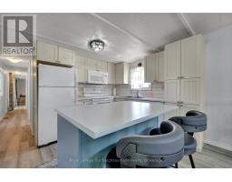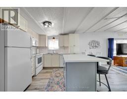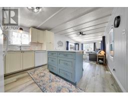 Updated & Affordable! Perfect for First-Time Buyers or Downsizers! Move-in ready and freshly updated! This bright, open-concept home offers a welcoming living space with large windows that let in plenty of natural light and a cozy gas fireplace to enjoy year-round. New laminate flooring runs throughout the entire home, adding a clean and modern touch. The updated kitchen features a new island, Corian countertops, ceramic tile backsplash, modern sink, and updated lighting - perfect for cooking and entertaining. The bathroom has also been refreshed with a new vanity, sink, and toilet. Additional features include a separate laundry room for extra storage, a walk-out to a spacious deck ideal for summer barbecues, and a new shed (2022) for added convenience. The entire home has been freshly painted for a crisp, updated look. New front door with keypad. Don't miss this great opportunity to own a stylish, low-maintenance home at an affordable price! Park fees are $680.00 + realty taxes $47.93 + water testing $39.57 = $767.50 (id:47351)
