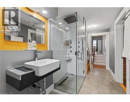 Step through the front door of this Victorian semi and prepare to be surprised — this all-brick beauty is MUCH bigger and more captivating than it appears! A dramatic entry foyer with soaring ceilings welcomes you into a home that radiates personality and warmth. The main floor offers an impressive sense of scale: generous living and dining rooms perfect for hosting, plus a huge updated kitchen with a double-width stainless steel fridge and room to truly cook, gather, and live. A convenient 4-piece bath and a high, dry basement with side walk-out add everyday practicality. Upstairs, character takes centre stage. Rustic wide-plank pine floors, full of story and charm, lead past a skylight that pours natural light down the stairwell. The spacious layout includes a large bedroom, a cozy office/bedroom, and a remarkably generous primary suite that flows into a connected den. From here, step out onto your covered balcony — an intimate, elevated hideaway perfect for morning coffee or late-night unwinding. The stunning renovated bathroom brings modern luxury with an all-glass shower, concrete-style flooring, and in-suite laundry. The finished third-floor loft completes the home with an inspiring open-concept space ideal for a studio, bedroom, or creative retreat. Outside, the fully fenced yard is an urban oasis: a large deck for entertaining, a charming side courtyard tucked under the balcony, and a converted garage for great storage. A rare two-car driveway is the kind of bonus you almost never find here. With more than $70,000 in thoughtful improvements — roofing, wiring, masonry, moisture protection, a full bathroom renovation, and numerous cosmetic upgrades — this home blends historic soul with modern comfort. All of this sits steps from the energy of James North’s arts and dining scene, the West Harbour GO Station, Bayfront Park, and the waterfront. It’s the perfect mix of vibrancy, charm, and spacious downtown living — a truly one-of-a-kind Hamilton home. (id:47351)