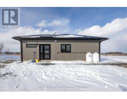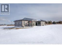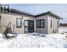 Modern Country Living on 25 Acres - Just Minutes from Gananoque. Welcome to the perfect blend of contemporary comfort and peaceful rural living. This recently built, slab-on-grade bungalow sits on a stunning 25-acre property, offering space, privacy, & low-maintenance living - all just 5 minutes east of the town of Gananoque & approximately 30 minutes from downtown Kingston. Step inside to a bright, open-concept home featuring laminate flooring throughout (completely carpet-free) with tile in the bathrooms, all warmed by in-floor radiant heating for year-round comfort. The heart of the home is a stylish modern kitchen designed for both everyday living entertaining. You'll love the quartz countertops, elegant tile backsplash, slow close cupboard drawers & large center island, plus a full set of new LG appliances included. The spacious primary bedroom retreat offers a beautifully finished ensuite with, double sinks, quartz countertops, custom tiled shower with sliding glass door. From the ensuite, you'll appreciate the smart layout leading directly into a convenient & functional shared laundry room & walk-in closet. Two additional generously sized bedrooms provide flexibility for family, guests, or office/gym space, with one featuring a door to the side yard for private access. The second bathroom is equally impressive, showcasing a pocket door, quartz counters, & a stylish freestanding tub. This home also features A/C, a storage shed & 9000 recently planted trees. Built for easy ownership, the home exterior features board & batten-style vinyl siding & a durable metal roof, ensuring long-term, low-maintenance living. If you've been searching for modern finishes, efficient design, & acreage close to town - this property delivers it all. (id:47351)