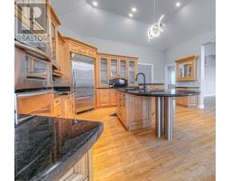 Luxury Living Meets Industrial Capability on 10 Private Acres Discover a rare blend of luxury, efficiency, and commercial-grade utility with this remarkable insulated concrete home spanning 9,000+ square feet, perfectly situated on almost 10 secluded acres complete with a private pond, scenic surroundings, and unmatched craftsmanship. Built for efficiency and longevity, the home features 14-foot ceilings, in-floor heating, a solid 6" stone exterior, and a sprayed rubber foundation for superior insulation and durability. Inside, a sprawling open-concept layout welcomes you with a custom solid maple kitchen, granite countertops, and a massive primary suite with a spa-like ensuite. Additional features include a loft/studio above the garage, a dedicated home theatre, and a finished lower level with a guest bedroom-ideal for family or visitors. The true stand-out of this property is the 4,000 sq. ft. detached shop, engineered to industrial/commercial specifications. Boasting 16-foot ceilings, three 12' x 14' bay doors, 3-phase hydro, and 2 pc bathroom, this space is perfectly suited for tool & die work, automotive, CNC/laser cutting, data centers, or any high-demand electrical needs. As an added bonus, the shop also includes a fully integrated golf simulator, creating the perfect blend of work and recreation-ideal for unwinding or entertaining clients and guests. Outdoors you can enjoy the tranquility of your own private pond, extensive stamped concrete finishes, and a concrete balcony overlooking the grounds-perfect for peaceful mornings or evening gatherings. This property is a rare and versatile opportunity, offering executive-level living with commercial-grade utility-just minutes from city amenities, yet worlds away in terms of space, privacy, and potential. (id:47351)