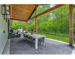 Welcome to The Forest Home! Live inside a painting with the changing seasons. A breathtaking custom estate nestled on 6.39 acres of pristine, wooded landscape, offering the ultimate in privacy, serenity, and refined living. Designed as a forever home and built to exacting standards, this exceptional bungalow is a masterclass in modern elegance and timeless design. From the moment you arrive, the home's architectural symmetry impresses with two double garages flanking the stately entrance for a dramatic and balanced curb appeal. Inside, approximately 3,250 sq. ft. of thoughtfully curated main floor living unfolds in an airy, open-concept layout. Inspired by Scandinavian simplicity and elevated farmhouse style, every space feels grounded in nature yet luxuriously appointed. Impeccable finishes and high-end upgrades are found throughout; too numerous to list here, but detailed in the attached brochure. Every detail has been carefully considered: from the gourmet kitchen, walk in pantry, coffee bar, every bathroom having a different theme with imported tiles and the rustic wood stove that boasts the most amazing roaring fires! Outdoor living is equally spectacular. Enjoy alfresco dining on the covered patio, unwind in the outdoor lounge, or soak in the hot tub under the stars and an entertainers dream and a private retreat in one. The expansive walk-out basement with separate entrance offers limitless potential for an in-law suite, studio, or bespoke entertaining space. The long driveway accommodates guests with ease, while the brand-new 40 ft well and septic system provide long-term peace of mind. Siding onto the 40 Mile Creek, this estate feels worlds away yet is just 6 minutes from charming downtown Grimsby and 30 minutes from the renowned wineries, boutiques, and fine dining of Niagara-on-the-Lake and Niagara Falls. With easy access to Hamilton and Burlington, this location perfectly balances seclusion and convenience. (id:47351)