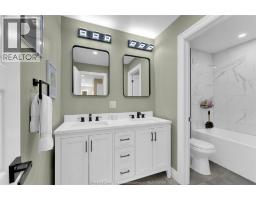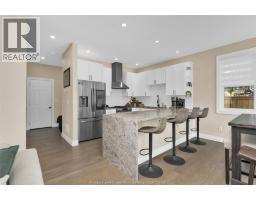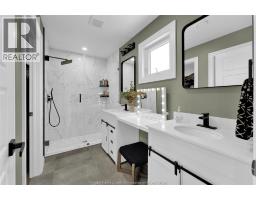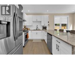 Custom built in 2023, this stunning 2-storey Amherstburg home offers 3+1 bedrooms, 2.5 baths, and an attached double garage with 1,727 SQFT of above-grade living space plus a mostly finished basement featuring an additional bedroom with large window, spacious living area, and bathroom rough-in. The exterior showcases stone wainscot detailing, board-and-batten with vinyl siding, new privacy fence (2025) along north side of yard, and paved triple-wide driveway, walkways and rear patio (front drive parks 3 cars wide comfortably). Inside, you’ll find engineered hardwood floors, custom glass railings, second-floor laundry and a modern kitchen with waterfall-edge granite countertops, gas stove, all new (2023) appliances and oversized sliding patio doors leading to paved rear patio. The primary suite boasts a walk-in closet and spa-style 5-piece ensuite. The home has a sump pump with battery back-up system & backflow valve. Located walking distance to vibrant downtown Amherstburg waterfront, walking trails, restaurants, shops & more. This block of George Street is just recently completely redone; sewers, road, sidewalks, boulevard sod all brand new! (id:47351)