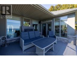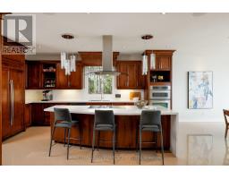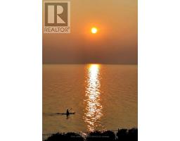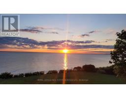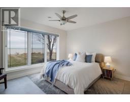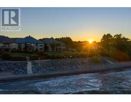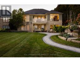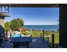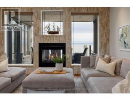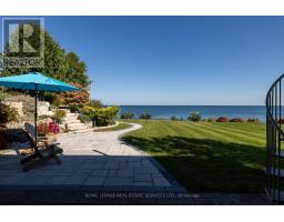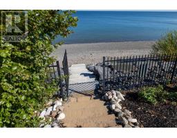 An upscale lakeside lifestyle awaits in Lakeland Landing, an exclusive detached bungalow condominium community in Grimsby on the shores of Lake Ontario. Siding onto a grove of trees, this stunning 4-bedroom residence with a beautifully finished walkout basement is one of only four estates with direct beach access. Enjoy nearby waterfront parks, the Grimsby Waterfront Trail, Forty Mile Creek Park, Foran's Marina, the shops and restaurants of Grimsby on the Lake, and wineries and fine dining minutes away with easy QEW access at the gateway to Ontario's Wine Country. Outstanding curb appeal and magnificent professional landscaping with a cobblestone driveway accommodating 6 cars, extensive use of armour stone, and the backyard is a private lakeside retreat with two terraces designed to capture sweeping water views. Custom-built by DeHaan Homes, the home showcases exceptional craftsmanship with 9 and 10-ft ceilings, engineered hardwood floors, custom millwork, designer lighting, and expansive windows capturing breathtaking lake views. The open-concept main level features functional, elegant living spaces, a great room with a quartzite feature wall, 2-sided gas fireplace and exceptional lake views, a chef's kitchen with upgraded quartz counters, 10' waterfall island with a breakfast bar, and premium appliances, and a dining area with a walkout to a covered terrace with a fireplace, frameless glass railings and a custom wrought iron staircase to the lower terrace. The primary suite offers lake views and a luxurious 5-piece ensuite. The walkout lower level includes a renovated family room with a fireplace, a second kitchen with Thermador appliances, a home theatre, two bedrooms, a 4-piece bath and terrace access. Recent upgrades (2022-2025) include renovated living spaces, updated kitchens, EV charger rough-in, electrical upgrades, and security window film. (id:47351)