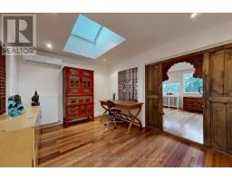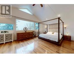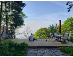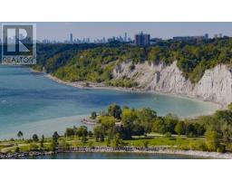 Paradise on the Bluffs with Lake Views. A rare, private and artfully designed retreat-once home to a renowned actor during multiple filming seasons. Set high on the Scarborough Bluffs overlooking Lake Ontario, this exceptional property offers serene living immersed in nature, just 12 km from downtown Toronto. Tucked away on a quiet cul-de-sac, this detached luxury residence features 2 bedrooms, 2+1 bathrooms, 3 parking spaces and an EV charger. The beautifully landscaped backyard unfolds to tranquil lake views framed by mature trees, with birds and deer as frequent visitors. The open-concept main floor is designed for comfort and awe: a sunken living room with cathedral ceilings and sliding glass doors to the yard and lake; a granite-clad kitchen with island seating for four; a dining area with custom cabinetry overlooking the living space and shimmering water; and a well-appointed bedroom with a large closet. The second floor offers refined, Asian-inspired décor, highlighted by an oversized primary suite with a spa-like 5-piece ensuite, a cozy family room and a dedicated office. The lower level is equally impressive, featuring a granite kitchen ideal for entertaining, a fully equipped gym and sliding doors leading to the backyard and lake views. Outdoors, the spectacular 400-foot-deep yard is adorned with Brazilian pebbles, flowers and trees, anchored by a fragrant lavender bush. Two expansive decks are perfectly positioned to take in the lake and lush surroundings. Curated with original artwork and sculptures from the artist-owners' travels, every space is infused with creativity and soul. Steps to a park, a 10-minute walk to the Rosetta McClain Gardens, a short drive to the beach, and minutes to the Bluffs-this is a rare opportunity to experience a true lakeside sanctuary in the city. (id:47351)