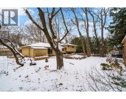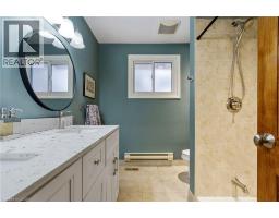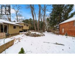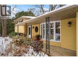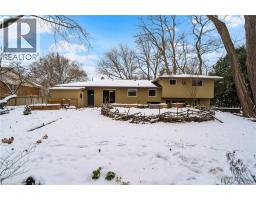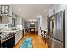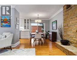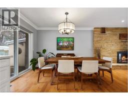 Tucked away on a quiet, private street yet steps from University Plaza, the Rail Trail, and just minutes to McMaster University and Hospital, this extraordinary 4-bedroom, 2-bath, four-level side split offers the perfect blend of serenity and convenience in the heart of Dundas. Set on a beautifully landscaped 95' x 125' lot with a stylish stucco façade, the home is flooded with natural light throughout, highlighting its warm and inviting spaces. The main floor features hardwood floors flowing through a bright living room with a charming bay window and stone fireplace, a dining room with sliding doors to the backyard, and a modern kitchen with quartz countertops, abundant cabinetry, and stainless steel appliances—ideal for cooking and gathering. Upstairs offers three generous bedrooms and a luxurious 4-piece bathroom with a double vanity and oversized shower. The lower level provides exceptional versatility with a cozy family room showcasing a gas fireplace, a second full bathroom, and an additional bedroom with a walkout to the private backyard—perfect for guests, in-laws, or a home gym. The fully finished basement expands your living space with a spacious recreation room, a large laundry room, and abundant storage. Outside, the fully fenced yard is designed for relaxation and entertaining, featuring mature landscaping, a full-length interlocking patio, and convenient garage access. With its unbeatable location, beautiful updates, and thoughtful layout, this home is a rare Dundas find you won’t want to miss. (id:47351)