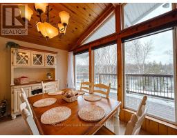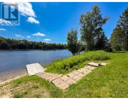Incredible opportunity to own a four-season waterfront retreat on a quiet, scenic stretch of the Magnetawan River, offering approximately 6 miles of boating in a peaceful setting. Set on approx. an acre with 176 feet of shoreline, the property features a gentle slope to a sandy beach, ideal for swimming, along with southwest exposure providing beautiful afternoon sun and sunset views. Directly across the road, the landscape remains open with additional river frontage, enhancing privacy and space. Located on a municipally maintained cul-de-sac, this property offers quiet enjoyment with minimal traffic. Inside, the main level features an open-concept living and dining area with vaulted ceilings, a gas fireplace, and large windows that capture the views and natural light, along with a fully screened sunroom that walks out to a spacious deck. The main floor includes three bedrooms, a 3-piece bath, and convenient laundry. Full walkout lower level with 9-foot ceilings and a block foundation, ideal for storage with double door access. Recent upgrades include a furnace and LifeBreath system, on-demand hot water, heated exterior steps for easy winter access, and an owned hot water tank. Outdoors, enjoy a newer dock, private boat launch, and a detached two-car garage with ample storage. A short drive to the village of Magnetawan for local shops and dining, this property offers year-round access and recreation including boating, swimming, fishing, and snowmobiling, making it a perfect home or cottage getaway. Boat launch to larger lakes less than 10 minutes away. Propane hookup for BBQ. (id:47351)