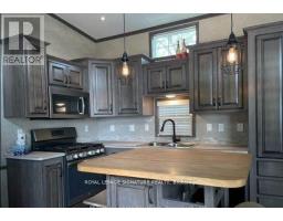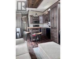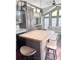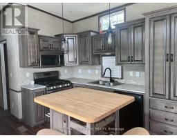KICK-BACK & RELAX AT AMENITY -RICH "NESTLE IN" RESORT ALONG EMILY CREEK- Discover an affordable way to enjoy the Summer Season with this 2018 Frontier modular unit by General coach gives you 540 sq ft of open concept living featuring vaulted ceilings. This unit comes fully furnished & is bright & spacious, modern & inviting for May-Oct season. The kitchen is massive & features a peninsula with bar stools for casual eating. By any measure, this is one of the best kitchens you can have with full appliances, double sink, windows & a built-in microwave for all your needs. There are 2 bedrooms & 1 3-piece bath that all have tons of storage, clean vinyl plank flooring. Bedroom 2 has a custom bunk bed with easy to access stairs with storage for safety & functionality. Outside the huge deck coverage partially by sizable. (id:47351)