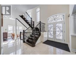 Welcome to this impeccably maintained 4-bedroom residence, thoughtfully designed for the modern growing family. The stunning main floor showcases dramatic 18-ft (approx.) open-to-above ceilings in the living room, complemented by expansive windows that flood the space with natural light. Elegant hardwood flooring extends throughout the main and upper levels.The open-concept kitchen features granite countertops and high-end appliances, seamlessly flowing into a bright breakfast area and inviting family room. A separate formal dining room, enhanced with designer lighting, creates the perfect setting for refined entertaining.Upstairs, you'll find 4 generously sized bedrooms and 3 full bathrooms, offering exceptional comfort and functionality for the entire family. The walk-up basement presents outstanding potential for a recreation space, home theatre, or private guest suite.Step outside to a beautifully interlocked, low-maintenance backyard-ideal for effortless outdoor enjoyment. Conveniently located just minutes from Vaughan Mills, Canada's Wonderland, schools, and major highways, this home delivers an exceptional blend of luxury and everyday convenience. (id:47351)
