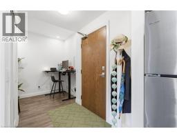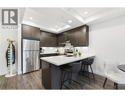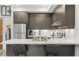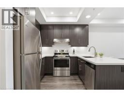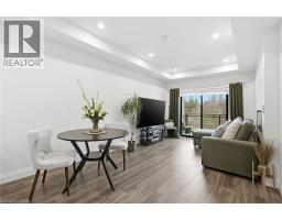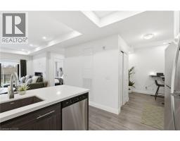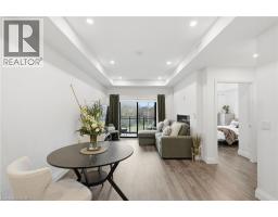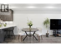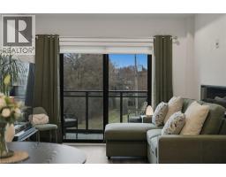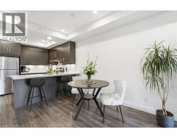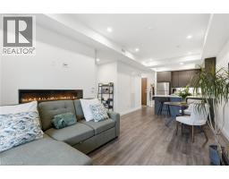 Tucked on a quiet, mature side street in sought-after Waterdown, this stylish south-facing 1-bedroom + Den suite with 1 garage parking and locker at The View offers you a rare blend of peaceful surroundings and walkable convenience. Just steps to the quaint downtown core, local shops, and the scenic trails and lookout points along the Niagara Escarpment, the location feels both connected and tucked away. From inside the well-cared for Unit 201, you’ll enjoy tranquil views of trees that create a true sense of calm. Thoughtfully designed, the suite features a versatile den ideal for a home office or hobby room, a spacious dining area that can accommodate a full table set, a spacious living room with a wall-mounted electric fireplace, and a private balcony to enjoy. The kitchen is well-appointed with white quartz countertops, stainless steel appliances, and a generous peninsula for everyday living and entertaining. The bedroom easily fits a complete furniture set, while the spa-like bathroom offers a tiled walk-in shower, linen storage, large floating vanity, and a laundry machine closet. This well-maintained 6-year-old building feels like an extension of your home, with concierge/security staff that know your name, a fully equipped gym, expansive party room w prep kitchen, cozy lounge, 6th floor terraces w seating and wonderful views, a pet spa, EV parking, and lots of parking for your guests. While being a quick drive to major highways, GO Stations and major shopping centers; your new home awaits in Unit 201, a peaceful, well-designed suite in Waterdown’s most modern yet charming settings. (id:47351)