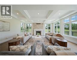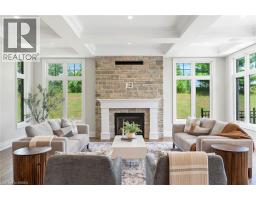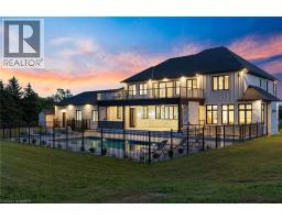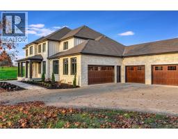Presenting a once in a lifetime property. Welcome home to the iconic Falkland Springs Estate at 30 Brant County Highway 2, Brant. A generational retreat on over 10 acres of scenic countryside. Custom built in 2024, this elegant showpiece is perched atop a breathtaking landscape—a legacy property offering unmatched privacy and grandeur. Equipped with outbuildings and ponds, start the tour through a gated entry that leads up a winding and fenced road. Commanding a staggering 7472 sq ft en masse, with nearly 2000 sq ft in the oversized 4 car garage and 7100 sq ft of which is masterfully crafted finished living space. The home radiates timeless sophistication. Find 6 bedrooms and 6 bathrooms including a separately accessed and full in law suite and full kitchen. Enter the home into a bright and inviting foyer. To the left, a richly appointed office with custom built-ins and a gas fireplace sets a refined tone. On the right, an elegant dining room showcases intricate ceiling details, ideal for formal gatherings. The heart of the home is the open-concept kitchen and living room. Coffered ceilings and a cozy gas fireplace create warmth, with sight-lines of private resort-style backyard—complete with an outdoor kitchen, covered patio, gas fireplace, and heated saltwater pool. The chefs kitchen outfitted with high end, built-in appliances. It seamlessly blends functionality with luxury with an abundance of custom cabinetry and ample counter space. Upstairs enjoy a coffee bar leading into the primary suite with walk through closet, a stunning en suite and a balcony overlooking the pool and mature trees. The bright basement is home to the secondary suite but is still versatile and has room for the whole family! Enjoy an additional rec room, a sauna with plenty of seating and a dedicated theatre room. This home has it all! For the hobbyist the larger of the outbuildings was once a hatchery is 5387 sq ft. For the discerning buyer; don’t wait, begin your legacy today. (id:47351)