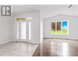 Incredible 44' deep grand room overlooks 18-hole waterfront golf course! 9 ft & 11 ft high main level ceilings & multitudes of big, bright windows, & energy efficiency are just a few of the hallmarks of this bungalow-This brand new never-lived-in home includes new home warranty! Tremendous curb appeal starting with the mature red-maple tree, designer roof lines & stone front complimented by James Hardie siding-After you park your car in paved drive, you can walk up to front covered veranda & catch a glimpse of an ocean-going freighter-Entering front foyer you will be impressed with lovely tile throughout foyer & kitchen/dining area & wowed by the vaulted 11 ft ceilings that extend from front to back in this magnificent grand room-Huge south-east facing window allows you to enjoy all the golfing action across the street-Custom kitchen features white shaker kitchen cabinetry with ample pull-outs, multitudes of pot drawers + full-height pantry-Kitchen is complete with centre island, Canadian-made quartz countertops, gorgeous tile backsplash, brand new Frigidaire Gallery stainless steel appliances incl d/w, microwave/hood range, gas stove & French dr refrigerator with bottom freezer-Dining area patio drs lead to 14 x 12 ft covered veranda overlooking fenced yard-Main level east wing has 9 ft ceilings & very wide tiled hallway leading to inside entrance to garage, main flr lndry & features a chic 4-pc bath, spacious 2nd bdrm & large primary bdrm with 9 ft high tray ceiling, walk-in closet & marvelous ensuite with walk-in shower-Gorgeous hrdwd in living room & both bdrms-Dnstrs you find a fully finished living space ideal for extended family/in-law suite-Every room has even more big, bright windows & tall ceilings-you would never know this is a bsmt! Main garage dr measures 16x8ft to accommodate oversized vehicles & there is an 8x7 side garage dr, ideal for golf cart or snowmobile-HST incl-Please ask us for a copy of Builder Upgrades-Walk to shopping & Tim's! Welcome home (id:47351)