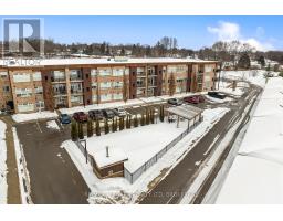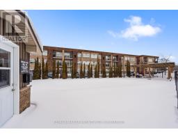 Exceptional value in Niagara's premier gated retirement condominiums. This bright top-floor, corner suite at Olympia Retirement Condos features two bedrooms, one bathroom, 9-foot ceilings, and in-suite laundry, offering comfort, privacy, and abundant natural light. The upgraded kitchen showcases granite countertops, enhanced cabinetry, and a breakfast peninsula with classic white shaker-style cupboards. The open-concept living and dining area is ideal for everyday living and entertaining, highlighted by large windows, California shutters, and updated light fixtures, including at the patio door. The suite includes a full-size washer and dryer, surface parking space (directly below unit balcony), storage locker, all appliances, and window coverings. Thoughtfully designed accessibility features include wider doorways, low transitions, and a visual alert system for the hearing impaired. Residents enjoy outstanding amenities such as an outdoor, heated in-ground pool, fitness room, lounge, banquet hall, guest suite, walking trails, and garden plots. Condo fees include water, building insurance, and exterior maintenance. Low heating and hydro bills. Conveniently located within walking distance to shopping, medical services, banking, and dining. (id:47351)