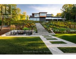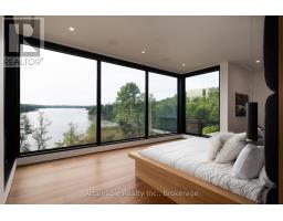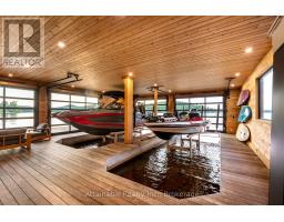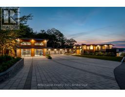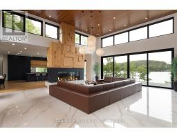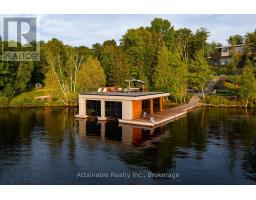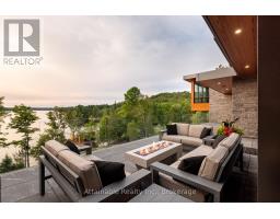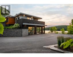 Welcome to your dream retreat on the serene shores of Fairy Lake in Huntsville, Ontario. This stunning modern lakefront home offers the ultimate in Muskoka living, blending contemporary elegance with breathtaking natural beauty. With 4 spacious bedrooms and 6 luxurious bathrooms, this home features high-end finishes, clean architectural lines, and an open-concept design perfect for both relaxing and entertaining. This home also has in floor heating in all the garages and the home. Expansive windows frame unobstructed lake views, while a Control4 smart home system puts lighting, audio, security, and more at your fingertips. Step outside to a private waterfront oasis with low-maintenance modern turf, striking stone accents, and a boathouse for endless summer fun. Enjoy lakeside dining with the industrial-grade outdoor kitchen and BBQ area, ideal for entertaining in style. Inside, the extensive home gym is equipped with high-end, commercial-quality machines, making wellness part of your daily routine. The detached garage with its own bathroom offers flexible use as a guest suite, gym extension, or studio, and the high-end garages provide ample space for vehicles and storage. What truly sets this property apart are the additional lots on either side, offering unmatched privacy, expansion potential, or a rare investment opportunity a major value add for discerning buyers seeking scale and exclusivity. All of this is just minutes from the shops, dining, and charm of downtown Huntsville. While enjoying the peace and prestige of lakefront living in one of Muskoka's most desirable locations. (id:47351)