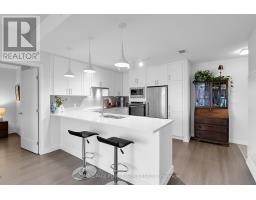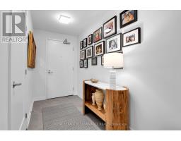 Welcome to The River Terraces at Greystone Village where refined urban living meets the tranquility of nature. This exceptional 2-bedroom residence, just steps from the Rideau River and Canal, offers approximately 954 sq. ft. of beautifully curated living space designed for comfort, elegance, and ease. A generous foyer opens to an airy, light-filled layout adorned with engineered hardwood floors. The sleek, white gourmet kitchen features Corian countertops, subway tile backsplash, shaker cabinetry, stainless steel appliances, and an oversized breakfast bar a perfect balance of style and function. The open-concept living and dining area invites both relaxation and entertaining, with large windows that flood the space with natural light and access to a private balcony complete with natural gas BBQ hookup. The primary suite is a serene retreat, offering ample closet space and a spa-inspired ensuite with a glass walk-in shower. A second bedroom, a full main bath, and in-suite laundry complete this thoughtfully designed home. Residents of The River Terraces enjoy an elevated lifestyle with amenities that include a fitness centre, yoga studio, fireside lounge and library, private dining room with kitchen, pet and car wash stations, and commercial-grade laundry facilities all within one of Ottawa's most coveted communities. (id:47351)