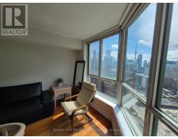 Roomy and Bright One Bedroom Fully Furnished Suite With 1.5 Baths (4 pc and 2 pc). Nicely Furnished and Well Equipped - all dishes, bedding, utensils. South/Southwest Views Of The City and Cn Tower. Wood Flooring, Marble Floors in Foyer, Kitchen And Bathrooms. New Large Wall Mounted Television, Whirlpool Tub And Separate Shower Stall In The EnSuite. Walking Distance To Major Hospitals, Eaton Centre, U Of T, TMU, Financial District. Surrounded By Fabulous Restaurants and T'nT. 1 Parking And Locker Included. Freshly Painted. New Bed Frame and Mattress (April 2026) (id:47351)
