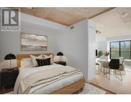 Urban living in the heart of the Junction! Step inside Superkul's newest award winning project at the Junction House. This thoughtfully designed and spacious 675 sqft one bedroom unit features exposed 9ft ceilings, floor to ceiling windows, contemporary materials and finishes for both entertaining & ease of living. Open concept living + dining area is flooded with natural light and desirable south tree top views. Well appointed scavolini kitchen includes integrated appliances, porcelain tile backsplash & gas cooktop. Spa-like bathroom boasts a scavolini vanity, porcelain tiles & large soaker tub. Premium white oak hardwood flooring throughout. Steps from the best restaurants, cafes, charming local shops, breweries, farmer's markets, transit & UP Express providing every convenience. The building includes a dynamic co-working/ social space, reliable concierge, well-equipped gym, yoga studio, visitor parking, 4000 sqft landscaped rooftop terrace with BBQs, cozy fire pits and stunning city skyline views. One storage locker included. Don't miss the opportunity to live in one of Toronto's most vibrant and sought after neighbourhoods. (id:47351)