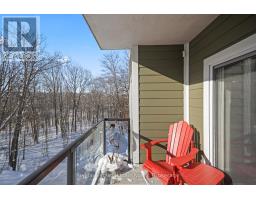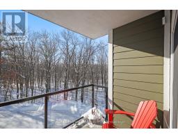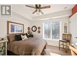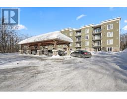 Welcome to this bright, immaculate 3 bedroom, 2 bathroom condo in Granite Trail, one of Gravenhurst's most desirable and well-constructed condo buildings. Built in 2008 with full ICF construction, this exceptionally quiet, well-managed building is the only condominium in Gravenhurst with underground parking and includes handicap accessible features throughout. The open-concept living, dining, and kitchen area is filled with natural light from large South facing windows and glass doors leading to a private, covered terrace, perfect for enjoying peaceful elevated forest views. The unit has been beautifully renovated, featuring new flooring, kitchen, bathroom vanities, fresh paint, modern light fixtures, electronic window coverings, and upgraded appliances, it is truly a move-in ready unit. The thoughtfully designed layout is separated into two private wings. The primary wing offers a spacious primary bedroom overlooking the forest, a 4-Pc primary bath with jet tub, a walk-in closet with pocket door, and an additional room ideal for a guest bedroom or private office. The second wing features a large guest bedroom with forest views and a close by updated 3-Pc bathroom, providing excellent privacy for visitors. Included are one exclusive underground parking space (#21), one exclusive same-floor storage locker (#2), and additional above grade public parking spaces. Residents enjoy manicured grounds and worry-free living with all exterior maintenance, groundskeeping, common elements, and water/sewer covered by the condo corporation. Condo fees are $730/month uniquely the same across all unit owners, no rentals, HWT on demand with a ventilator provides very low heating costs. An exceptional opportunity to own a bright, spotless, pride-of-ownership home offering comfort, privacy, and low-maintenance Muskoka living. (id:47351)