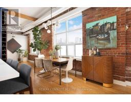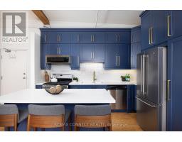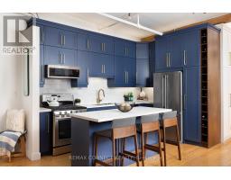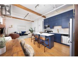 Welcome to 426 Queen Street East Suite 302 at the endlessly captivating Knitting Mill Lofts! With only 28 units spread across four floors, this hard loft conversion is perfect for those who prefer boutique living. Step inside this newly renovated post & beam loft & immediately notice the gorgeous exposed brick walls & painted spiral ductwork that says "New York". The kitchen has been fully updated with rich, deep blue custom millwork, brass pulls, & stainless steel appliances. A coveted gas range, dedicated wine storage, & large centre island will bring out your inner chef - dinner parties will never be the same. The oversized bedroom provides ample closet space, plus extra room for additional storage, a home office, home gym, or whatever your heart desires. The bathroom has been completely reimagined with heated floors & designer finishes, so whether you're getting ready for the office, a date, or a night out with friends, you'll feel amazing doing so. Oh, and there are two entrances to the unit as well, so you can use whichever tickles your fancy. High ceilings & huge windows with automatic blackout & solar blinds, plus unobstructed eastern views, mean lots of morning light - just imagine the sunbeams dancing across the brick walls. And not only is the loft itself beautiful, but so is the neighbourhood. You're only steps away from the Financial District, plus all of the best restaurants, shops, gyms, & amenities in Corktown. Imagine doing your weekly grocery stop just a short jaunt away at the famous St. Lawrence Market. Endless transit options are all around with the 501 Queen TTC streetcar right at your doorstep, plus the future Ontario Line Corktown Station & the 504 & 506 streetcar stops just a short walk away. Your inner runner or cyclist & your furry pup will be happy with so many parks, the Don Valley Trail, & Martin Goodman Trail all close by. Come see this breathtaking Knitting Mill Loft for yourself. Welcome home. (id:47351)
