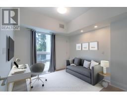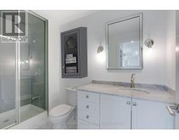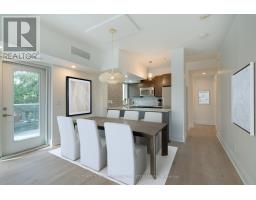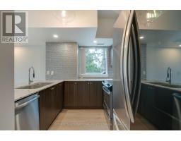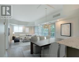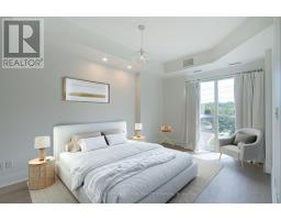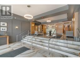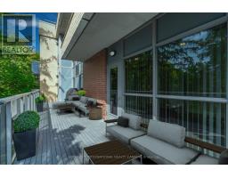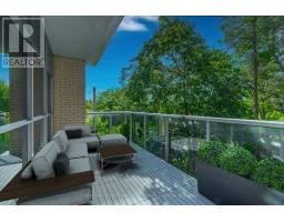Sunny, contemporary two-bedroom corner residence offering exceptional indoor-outdoor living. This beautifully maintained condo boasts a rare, south-facing 315 sq ft oversized terrace featuring NewTechWood decking, a gas BBQ, built-in cushion storage, planters, and tranquil treed views - the perfect private retreat for relaxing or cultivating flowers or vegetables. The recently updated interior showcases wide-plank white oak LV flooring, pot lighting, professionally painted throughout; elegant Restoration Hardware lighting, closet organizers and custom drapery. The thoughtfully designed split-bedroom floor plan offers ideal privacy and functionality. The primary suite comes complete with floor-to-ceiling windows, an ensuite bathroom and walk-in closet space. The second bedroom has floor-to-ceiling windows, a deep double closet and across the hall from a 4-pc bathroom. The kitchen includes a newer stainless steel refrigerator and a breakfast bar. The unit is equipped with a full-sized washer and dryer. Desirable two-car parking is included close to the unit locker. Situated in a quiet, well-maintained building, this turnkey unit is a rare find in the area and is ready to be enjoyed this spring. **Furniture is virtually staged - the unit contains the tenant's furniture at present.** (id:47351)