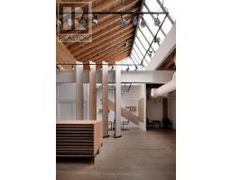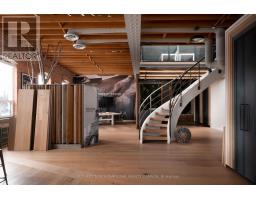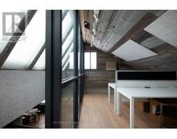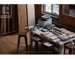 Set within a brick and beam Georgian-style industrial building originally constructed in approximately 1930 as the head office of Purity Flour Mills, 287 Macpherson Avenue is a boutique office building shaped by heritage proportion, material presence and architectural resonance, adapted for contemporary use. Offering approximately 3,301 square feet of distinctive, studio-scale workspace arranged across a main level and mezzanine, Suite 303 is currently configured as a showroom and working studio. Exposed brick, custom wide-plank wood flooring, and a measured interplay between structure and light establish a calm, grounded atmosphere. Large south-facing, industrial-scale windows and overhead skylights bring natural light throughout the space. A sculptural staircase connects the main floor to the mezzanine above, where the pitched roofline, exposed joists and skylight glazing introduce a quieter, more intimate spatial rhythm, while remaining visually connected to the space below. This intimate 271 square foot upper level is ideal as a private office or focused work area. The layout offers adaptability, whether used as an open-format studio, divided into complementary workspaces, or demised to a smaller footprint, while maintaining a cohesive architectural presence throughout. Defined by volume, materiality, and intent, this space is well-suited to design-led practices, architecture and interiors firms, material or product showrooms, and principal-led offices for practices that see workspace as an integral reflection of how they operate and engage clients. (id:47351)