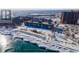 Beautiful 1 bedroom plus 1 den with unobstructed Lake Ontario views from Living Room, balcony and picture window in primary suite. Premium unit with 9 foot ceilings, quartz countertops, ensuite laundry, matching stainless steel Whirlpool appliances, under ground parking space. Fantastic common amenities include massive rooftop terrace with Lake Ontario views, party room, gym, bike storage. Don't miss this great home. (id:47351)
