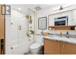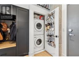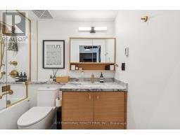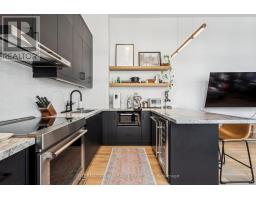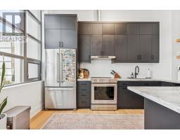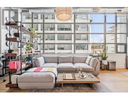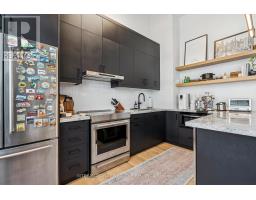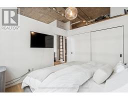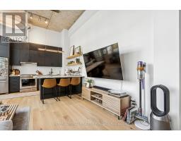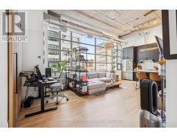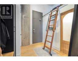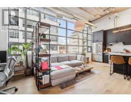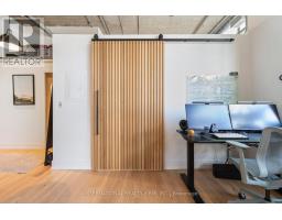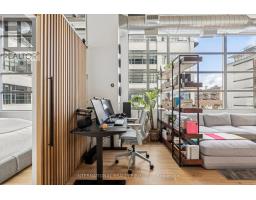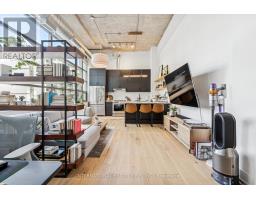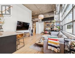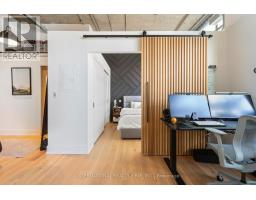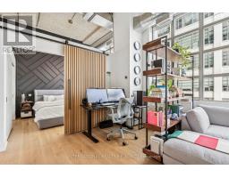 Step into a truly unique home at the iconic Tip Top Lofts. This fully renovated, light-filled suite stands apart with rare large windows that stretch the entire length of the unit - including a windowed bedroom, a feature seldom found in the hard loft portion of the building. With soaring 13 ft 2 in ceilings, the space feels bright, airy, and effortlessly stylish. The kitchen has been completely reimagined around a sleek peninsula island, perfect for casual dining or entertaining. Natural quartzite stone runs throughout the entire unit - in both the kitchen and bathroom - adding timeless beauty and durability. A built-in wine fridge, designer lighting, new flooring, and custom cabinetry elevate the home even further. The spa-inspired bathroom features heated floors, Kohler fixtures, quartzite counters, and striking Buster & Punch hardware. Custom 1928 Workbench doors in both the bathroom and bedroom pay homage to the building's heritage, while a custom bedroom feature wall and motorized blinds add comfort and sophistication. A generous mezzanine sits above the bathroom, offering endless versatility. A custom 1928 Workbench ladder system was also designed and installed to provide seamless access to the mezzanine and upper storage areas. Additional storage is thoughtfully integrated above the laundry closet and front foyer, alongside a custom front cabinet with added seating and shelving. This loft also includes a rare convenience: a parking spot already equipped for EV charging (Tesla Charger is excluded). Every detail has been considered in this top-to-bottom renovation, blending craftsmanship with functionality for a truly elevated loft lifestyle. A rare opportunity to own a beautifully redesigned, character-rich home in one of Toronto's most celebrated historic buildings. (id:47351)