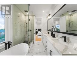 Introducing 303 Delta Street - a newly constructed masterpiece in the desirable Alderwood community, just minutes from amenities, services, and transit. This exceptional home offers over 4,000 square feet of masterfully designed living space across three levels, showcasing premium finishes, modern functionality, and timeless craftsmanship. The bright, open-concept main floor features 10-foot ceilings and an inviting family room with coffered ceilings, a gas fireplace, stone accent wall, and floor-to-ceiling windows that fill the space with natural light. The gourmet kitchen boasts an oversized island, matching quartz countertops and backsplash, porcelain floors, double sink, and top-of-the-line Bosch and Liebherr built-in appliances. The main level also offers formal living and dining areas, perfect for entertaining. A tiered staircase with glass railing leads upstairs to four spacious bedrooms, three bathrooms, and a convenient laundry room. The primary suite features a tray ceiling, custom walk-in closet, and a spa-inspired ensuite with double vanity, freestanding tub, and rainfall shower. The upper level also includes a balcony and skylight, adding natural light and charm. Throughout the home, pot lights and a built-in speaker system enhance the modern atmosphere on all three levels. The finished lower level offers a large recreation room, gas fireplace, 3-piece bath, walk-up to the patio, and waterproof vinyl flooring. Located in the highly sought-after Alderwood community, this home is close to parks, sports facilities, community centres, public transit, Sherway Gardens, the Toronto Golf Club, Queensway Health Centre, and local shops and restaurants along Browns Line. Located under five minutes from the Gardiner Expressway and Highway 427, commuting is truly effortless. 303 Delta Street delivers the perfect combination of design, comfort, and location - a true gem in one of Toronto's most family-friendly neighbourhoods. (id:47351)