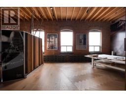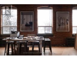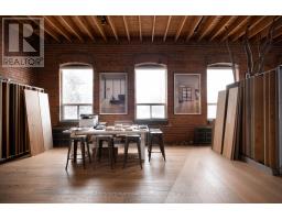 Set within a post and beam Georgian-style industrial building originally constructed approximately 1930 as the head office of Purity Flour Mills, 287 Macpherson Avenue is a boutique office building shaped by heritage proportion, material presence, and architectural resonance, adapted for contemporary use. Suite 304 comprises a defined portion of the upper level, conceived as a self-contained studio environment organized around a sculptural spiral staircase and mezzanine. This space captures the most vertically expressive elements of the floor, offering a distinctive workspace defined by volume, light, and layered spatial experience across 2,143 square feet (approximately). The main level functions as an open plan working studio and office, grounded by exposed brick, custom wide-plank wood flooring, and a refined interplay between structure and light. Large industrial-scale south facing windows bring natural light into the space, while the staircase anchors the layout both functionally and visually. Above, the approximately 271 square foot mezzanine introduces a quieter counterpoint. Framed by the pitched roofline, exposed joists, and glazed skylights, this upper level is ideal for focused work, a private office, or an intimate meeting space, while remaining visually connected to the studio below. The result is a workspace that feels open yet deliberate, with a natural sense of flow between levels. This suite offers an intimate yet architecturally rich environment that's well suited to design-led practices, architecture and interiors firms, or principal-led offices seeking a studio that balances presence with privacy. The space functions as a complete working environment, where material, light, and proportion shape both daily use and client experience. (id:47351)