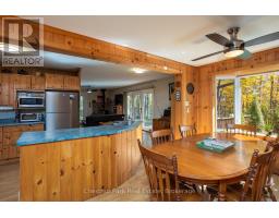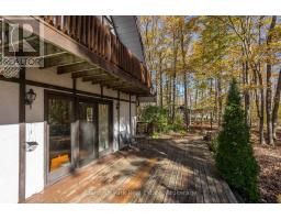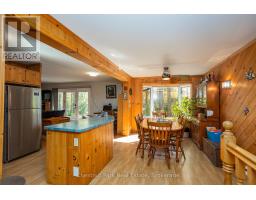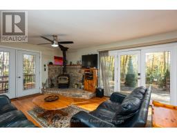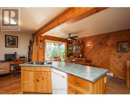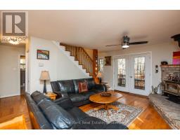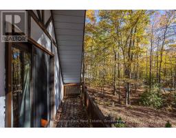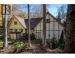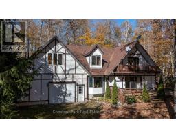 Set on a picturesque 2.3-acre hardwood lot on the beautiful Bruce Peninsula, this inviting Tudor-style four-season home or cottage offers a peaceful setting surrounded by nature, just minutes from the public boat launch on Miller Lake. With a seasonal glimpse of the water and a quiet wooded backdrop, it's an ideal retreat for those seeking privacy while remaining close to outdoor recreation. Inside, the home is bright and welcoming, featuring an open-concept living space with large windows that fill the interior with natural light. Hardwood floors add warmth and character, while the cozy wood stove creates the perfect gathering place on cooler evenings. The main level offers convenient everyday living, while the upper floor provides two additional generously sized bedrooms along with a well-appointed 3-piece bathroom. The attached 25' x 27' garage offers excellent space for vehicles, tools, and recreational gear, with a spacious bonus area above that could serve as a recreation room, studio, or creative workspace. A separate driveway includes RV parking complete with a hydro hook-up, while a large storage shed with dedicated wood storage adds further practicality for year-round use. Outdoors, the wrap-around deck with ramp access provides a wonderful place to relax and take in the peaceful surroundings. Wander along your own woodland trails, enjoy evenings gathered around the fire pit beneath the stars, or explore the nearby waters of Miller Lake, well known for swimming, boating, and fishing. Beautiful perennial rock gardens add colour and charm to the landscape throughout the warmer months. Whether you're searching for a year-round residence or a relaxing Peninsula getaway, this tranquil property offers space, privacy, and easy access to the natural beauty the Bruce Peninsula is known for. (id:47351)