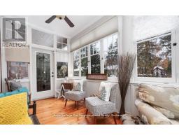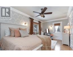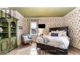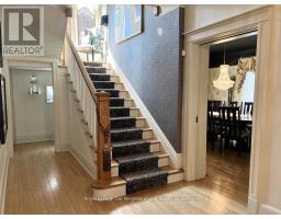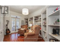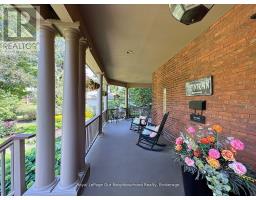 Create your very own Downton Abbey and experience the perfect blend of historic charm and contemporary elegance. This remarkable residence showcases timeless character alongside modern finishings, inviting you to live your best life surrounded by beauty and sophistication.From the moment you enter, soaring grand ceilings on both the main and second floors set the tone for the home's stately presence. Original hardwood floors span the first two levels, preserving the rich charm of yesteryear, while tasteful decor and oversized rooms create an atmosphere of refined comfort.The beautifully appointed kitchen features travertine flooring, an inviting eat-in area, and a walkout to the backyard oasis. Enjoy quiet mornings or evening gatherings on the cozy wraparound porch with pot lights, or in the enclosed sunroom overlooking lush, English-inspired gardens and a tranquil babbling brook pond.Upstairs, each spacious bedroom offers walk-in closets and grand ceilings, while the large laundry room-with its own walkout to a deck-makes chores a pleasure. The deck connects to a private gym and 3-piece bath located above the heated garage.The third floor is your private master retreat-a true sanctuary featuring a wraparound walk-in closet with custom built-ins, corner gas fireplace, and a stunning en-suite. Relax in the claw-foot tub or steamer shower, warmed by the gentle glow of a Napoleon electric fireplace. The large heated loft garage includes hydro, a garage door openers with remotes, and access from both the backyard and laundry room.Outdoors, the property is an absolute haven. Set on a rare double lot, the backyard offers mature perennial gardens, two ponds, a serene fire pit area, and a new fence providing privacy and peace. Enjoy natural gas hookups for your BBQ and future outdoor fireplace-perfect for entertaining in every season. New Fencing installed Fall 2024. Survey on File 2023. Walking distance to Trafalgar Castle (Private School) and Henry St High. (id:47351)
