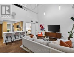Welcome to Suite 306 at The Church Lofts, a boutique hard loft conversion completed in 2010 within a restored 1901 neo-Gothic church. A rare opportunity to own one of just 28 residences, this distinctive building blends preserved architectural character with modern design in one of Toronto's most dynamic west-end neighbourhoods.The building's impressive entrance opens into a striking central atrium crowned by a skylight, creating a dramatic sense of volume and light. The experience of arriving home is both architectural and atmospheric, a memorable feature that sets the tone from the moment you enter. Offering approximately 1,160 interior square feet and 156 square feet of exterior living space across multiple levels, this two-bedroom, two-bathroom residence is defined by exceptional proportions and authentic hard loft detailing. Soaring 19-foot ceilings, exposed brick walls, and six skylights create an airy, light-filled interior. The suite's one-of-a-kind stained glass windows serve as a remarkable focal point, preserving the building's historic character while adding warmth and artistry to the living space. Recent updates include fresh paint throughout, a new dishwasher, and newly installed solar blinds. Wood flooring runs throughout, complementing the loft's architectural elements with a cohesive finish. Two private outdoor patios extend the living space and offer inviting outdoor retreats. The functional multi-level layout provides well-scaled bedrooms and two full bathrooms, well-suited to both everyday living and entertaining. One parking space and a private locker are included. Ideally located steps to Dufferin Grove and Christie Pitts parks. Enjoy restaurants, bars and amenities along Bloor and College Street. Quick access to TTC and public transit. (id:47351)