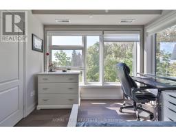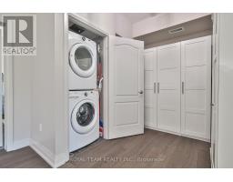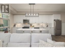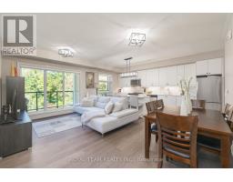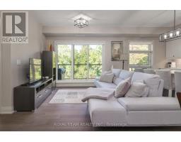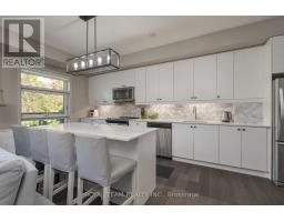 This stunning 3rd-floor corner unit offers serene forest views from every window and a spacious, light-filled layout. Featuring 2 bedrooms + a den, this executive condo showcases 9' ceilings, an upgraded chefs kitchen with quartz countertops, custom backsplash, breakfast bar, and designer lighting throughout. Enjoy stylish rich grey laminate floors, electric blinds, ensuite laundry, and a generous 20' x 5' balcony perfect for relaxing or entertaining! First-class amenities include a fully equipped gym, party room, pet spa, yoga studio, and a rooftop terrace with BBQ area. A rare combination of luxury, comfort, and nature all in one place! (id:47351)