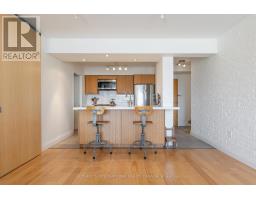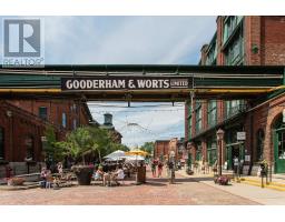 Offering a composed expression of city living with the historic Distillery District, this fully furnished two bedroom, two bathroom suite is thoughtfully arranged as a turnkey short term residence, designed for ease, comfort and flexibility. Hardwood floors and integrated millwork create a cohesive interior, while the updated kitchen anchors the living space with a centre island, bamboo cabinetry, stainless steel appliances, and generous preparation space. Natural light moves easily through the combined living and dining areas, framed by floor to ceiling south facing windows and a walkout to a large private balcony. The suite's split bedroom plan provides both privacy and adaptability. The primary bedroom features a walk in closet, a well proportioned ensuite bathroom, and a quiet south facing outlook. The second bedroom offers versatility as a guest room, office, or extended living space, also benefiting from southern exposure. Warm materials, refined finishes, and an intuitive layout establish a calm contemporary atmosphere. Offered fully furnished and configured for short term occupancy, the suite is ideally suited for executives, relocations, and professionals seeking a refined, turnkey residence in the city. Positioned within one of Toronto's most distinctive neighbourhoods, the Distillery District's cobblestone streets, galleries, cafés, and restaurants unfold just outside the door. Convenient access to the Financial District, St Lawrence Market, King East, transit, and major routes further enhances its ease of living. Parking and a bicycle are included. (id:47351)
